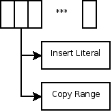 The segment-list of a delta describes how to create the target from the original by a combination of inserting literal byte-sequences and copying ranges of bytes from the original. This is where the compression takes place, by encoding the large common parts of original and target in small copy instructions.